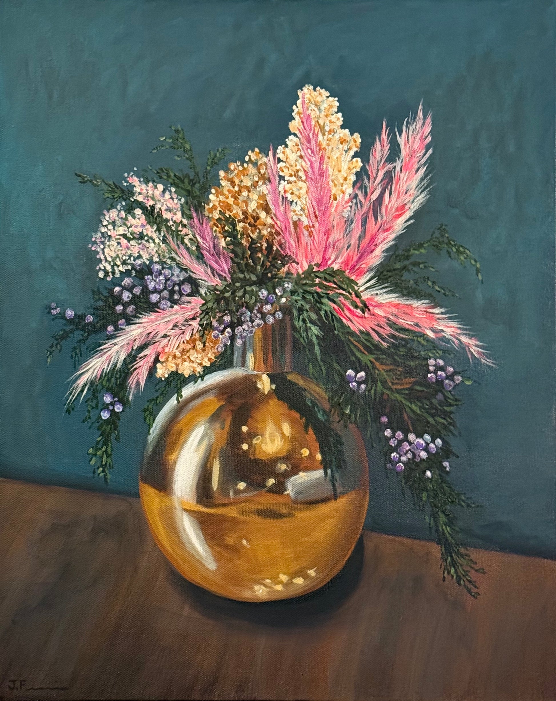 A golden vase brimming with playful blooms sets the scene for a leisurely morning. Soft textures, gentle light, and a sense of quiet joy—just like the perfect accompaniment to brunch.
